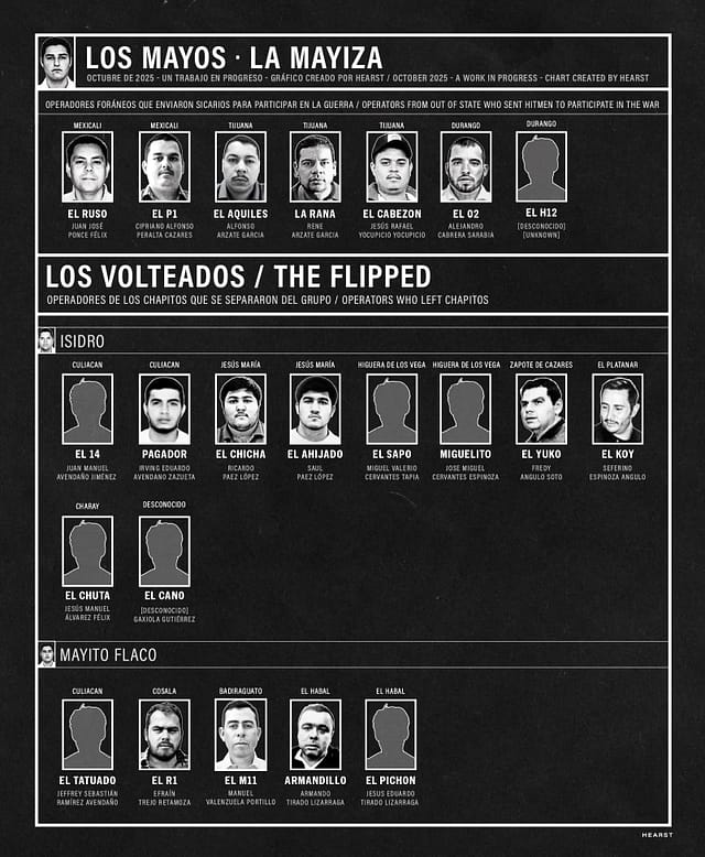 Here is her chart showing the Sinaloa Cartel figures from both the Chapiza (Chapitos) and Mayiza (Mayito Flaco) who are active in the Sinaloa Cartel civil war: