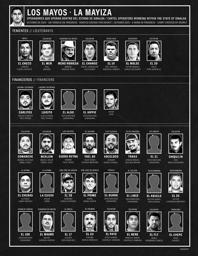 Here is her chart showing the Sinaloa Cartel figures from both the Chapiza (Chapitos) and Mayiza (Mayito Flaco) who are active in the Sinaloa Cartel civil war: